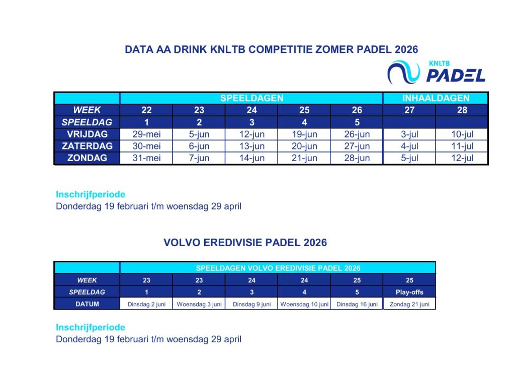 Voor meer informatie over de zomer padel competitie, volg deze link.